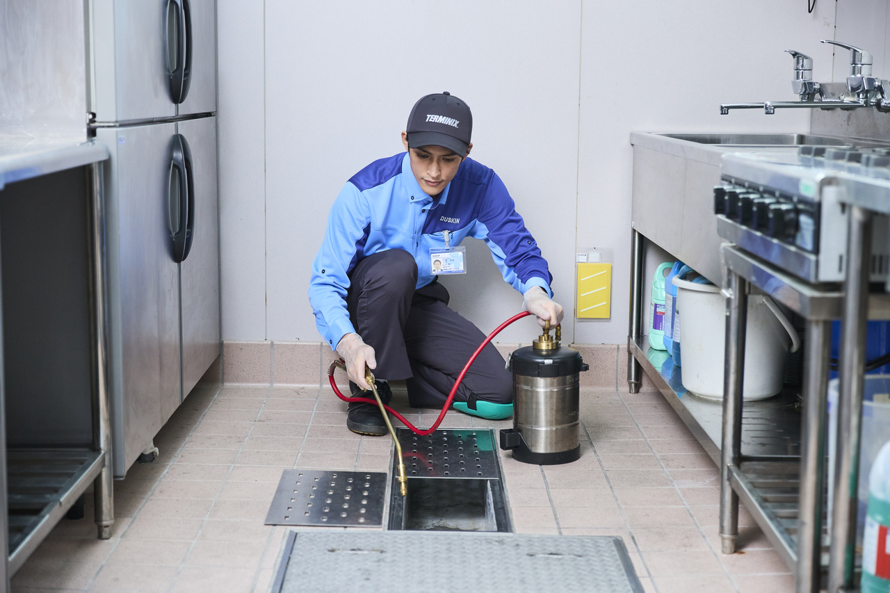 チョウバエの潜む排水溝や汚水槽などを調査。効果的な方法で駆除します。