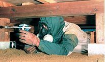床下の地面に薬剤を散布します。また、土台・束・基礎部分にも薬剤を吹き付けシロアリの侵入をブロックします。